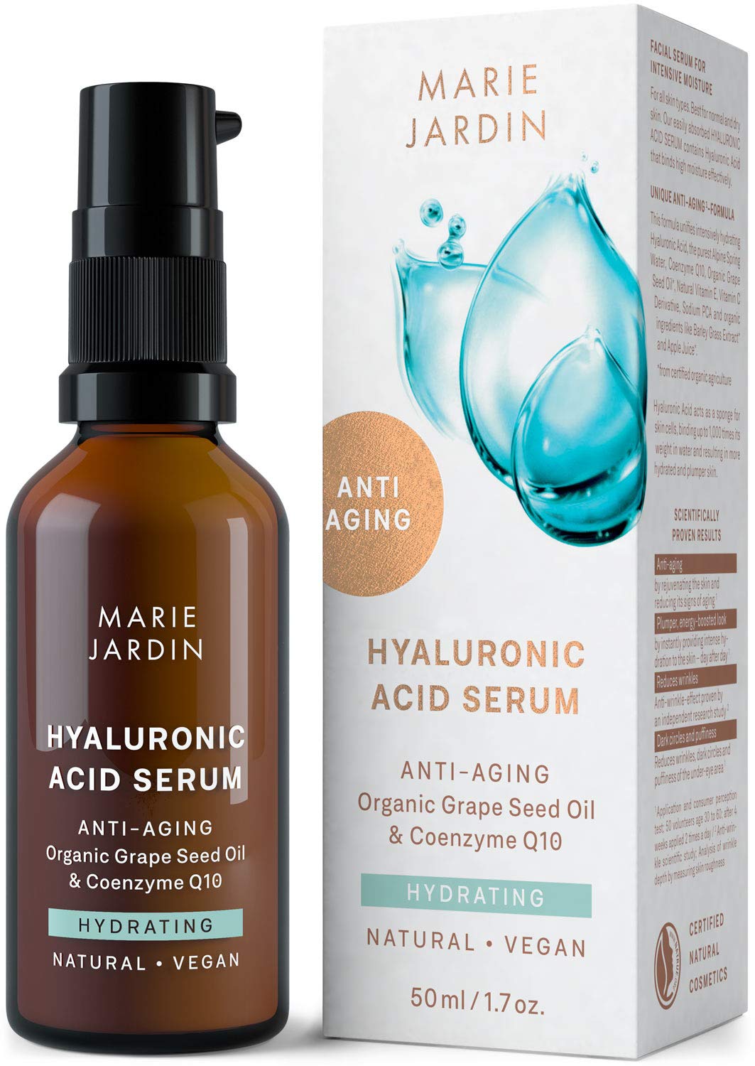 Hyaluron Serum mit Q10 | Vitamin C hochdosiert | 50 ml | bewiesener Anti Aging Effekt | Milderung von Falten und Augenringen | zertifizierte BIO Naturkosmetik von Marie Jardin